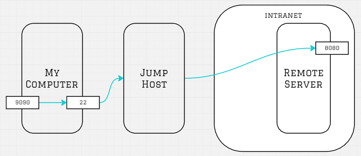 舉例而言,今天有個 web server 建立在 remote server 的 9000 port,而該 server 並沒有 external IP,而是需要透過 jump host 才能連上。