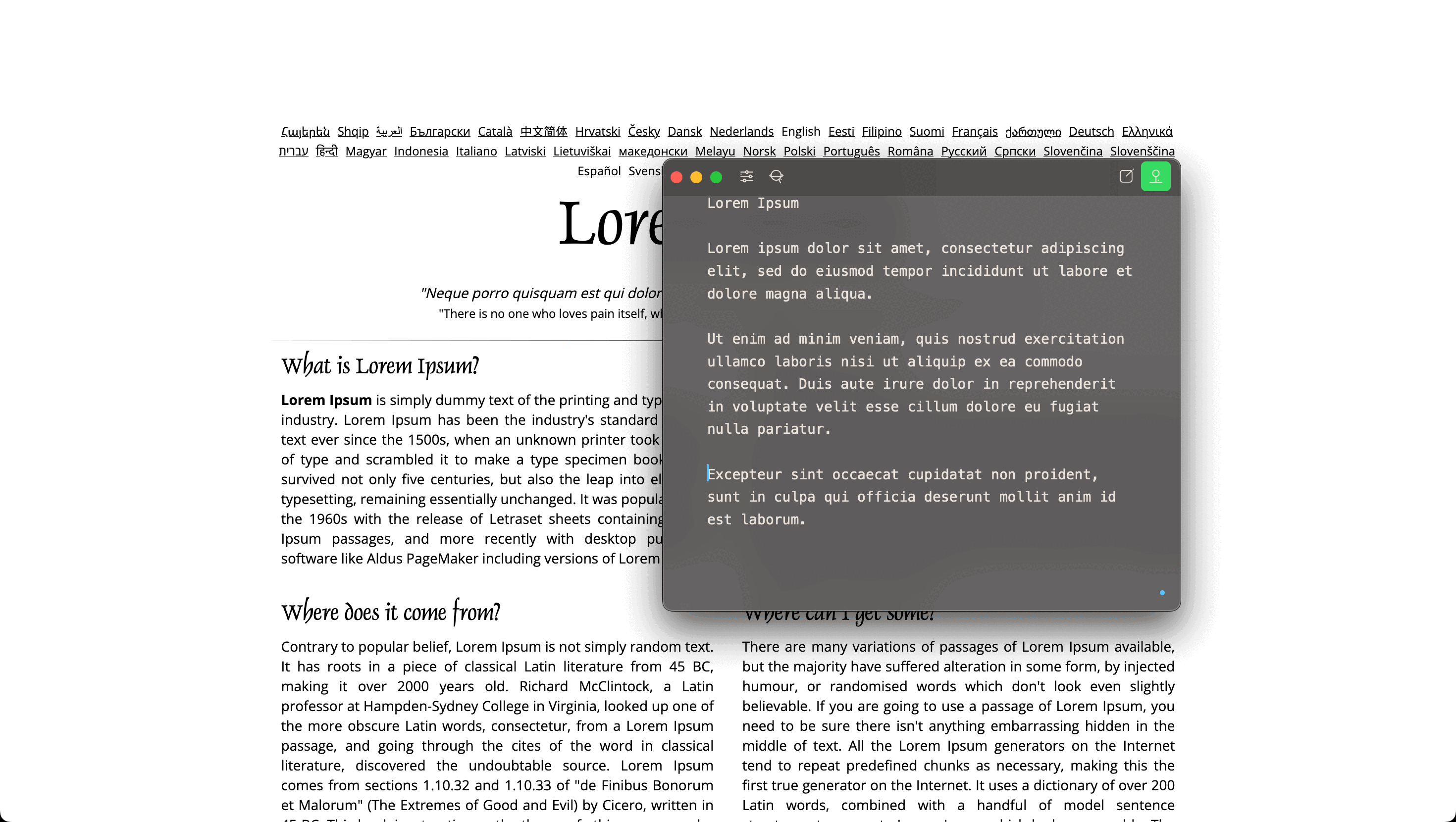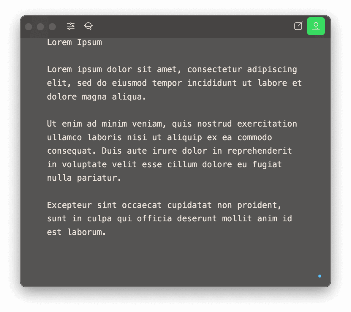 再來就是我可能需要複製貼上,或者同步查看筆記跟另一個視窗,Antinote 提供一個很方便的視窗釘選功能,只要按下右上角那個綠色的就可以把 Antinote 的視窗 pin 住