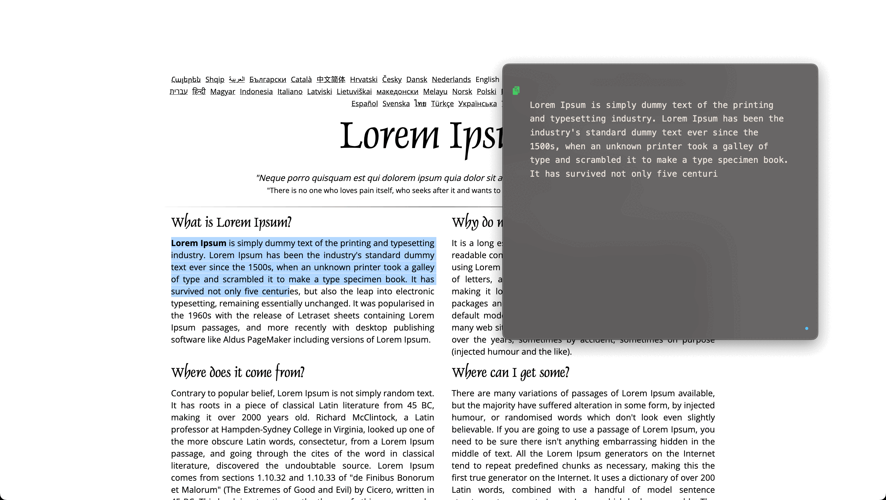 第一個最常用的就是有 global hotkey,我只要按下 option + A,就會跳出一個小視窗,我就可以快速開始打字,臨時想到一個東西想要記錄的時候就很方便。
